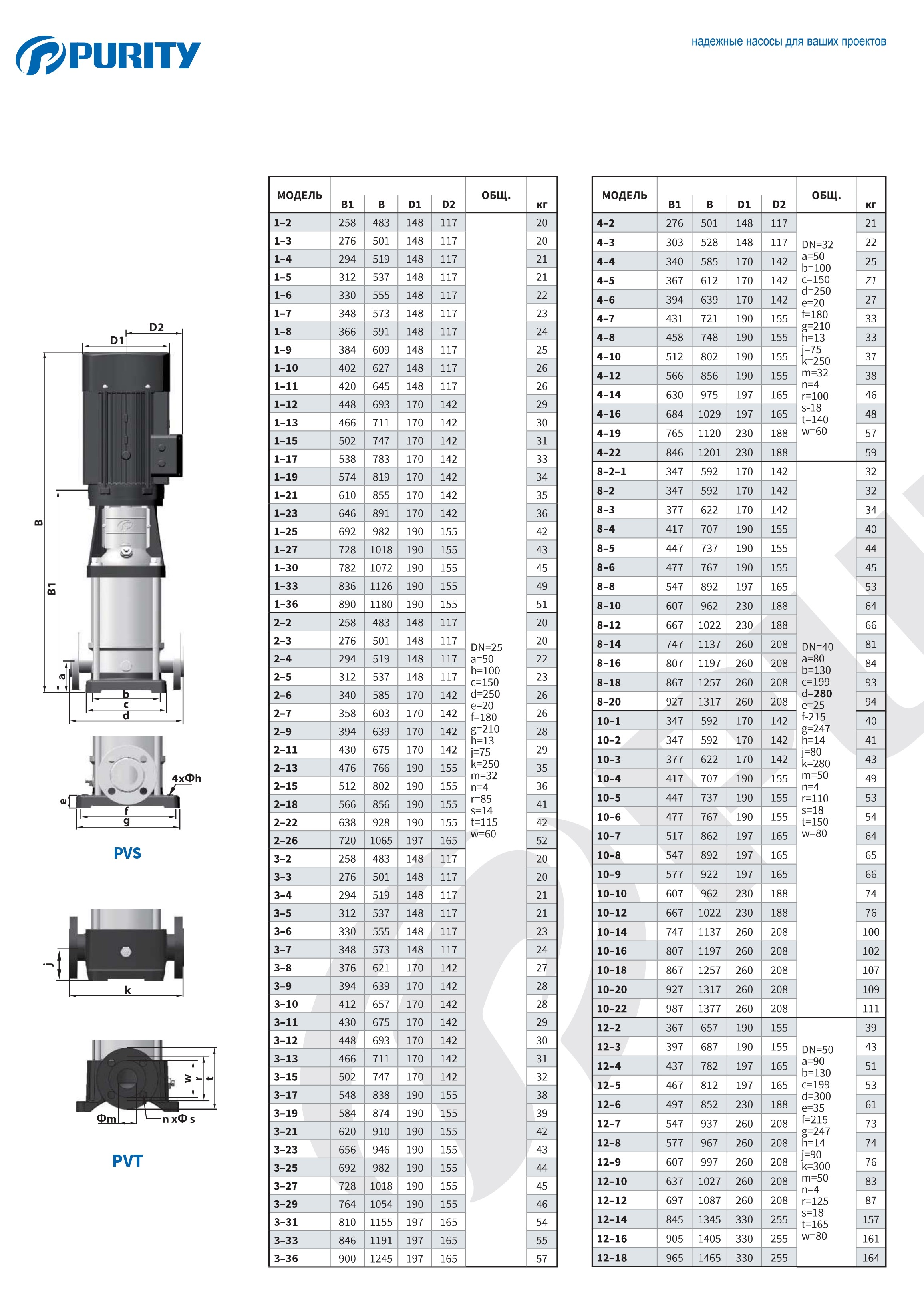 Мощность насоса Purity PVT 8-5 (N) составляет 2.2 кВт, а напряжение - 380В. Насос обеспечивает напор от 32 до 52 м, производительность — от 5 до 12 м³/ч.