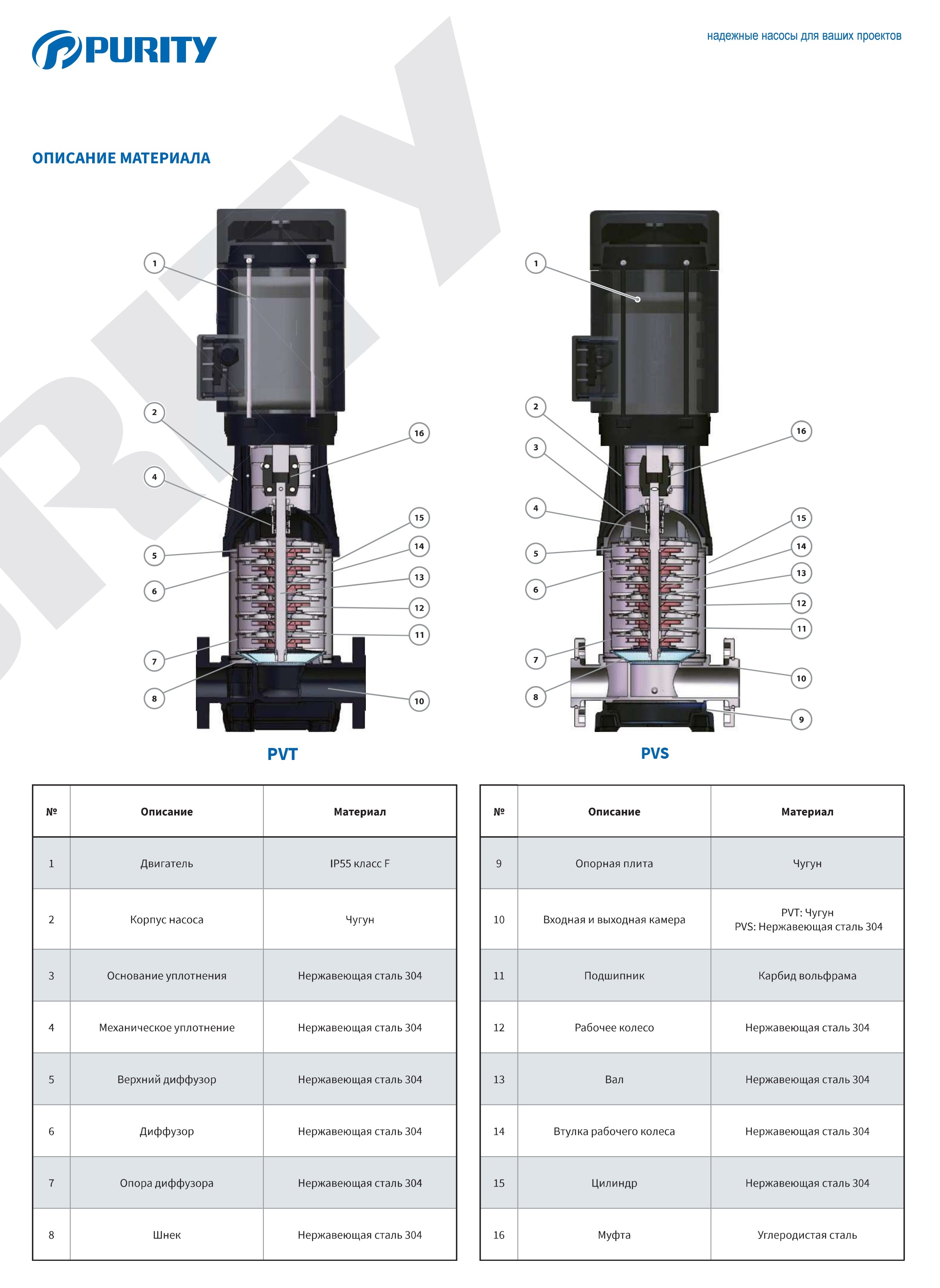 Вертикальный многоступенчатый насос Purity PVT 12-12 (N) предназначен для промышленных систем обработки, промывки и очистки, для перекачки кислот и щелочей в слабой концентрации, для систем фильтрации, повышения давления воды, водоподготовки, для систем отопления, вентиляции и кондиционирования, для ирригации и для противопожарных систем.