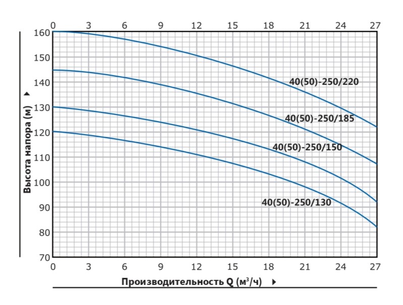Мощность насоса Purity P2C 40-250/150 (N) составляет 15 кВт, а напряжение - 380В. Насос обеспечивает напор от 92 до 124 м, производительность — от 8.4 до 27 м³/ч.