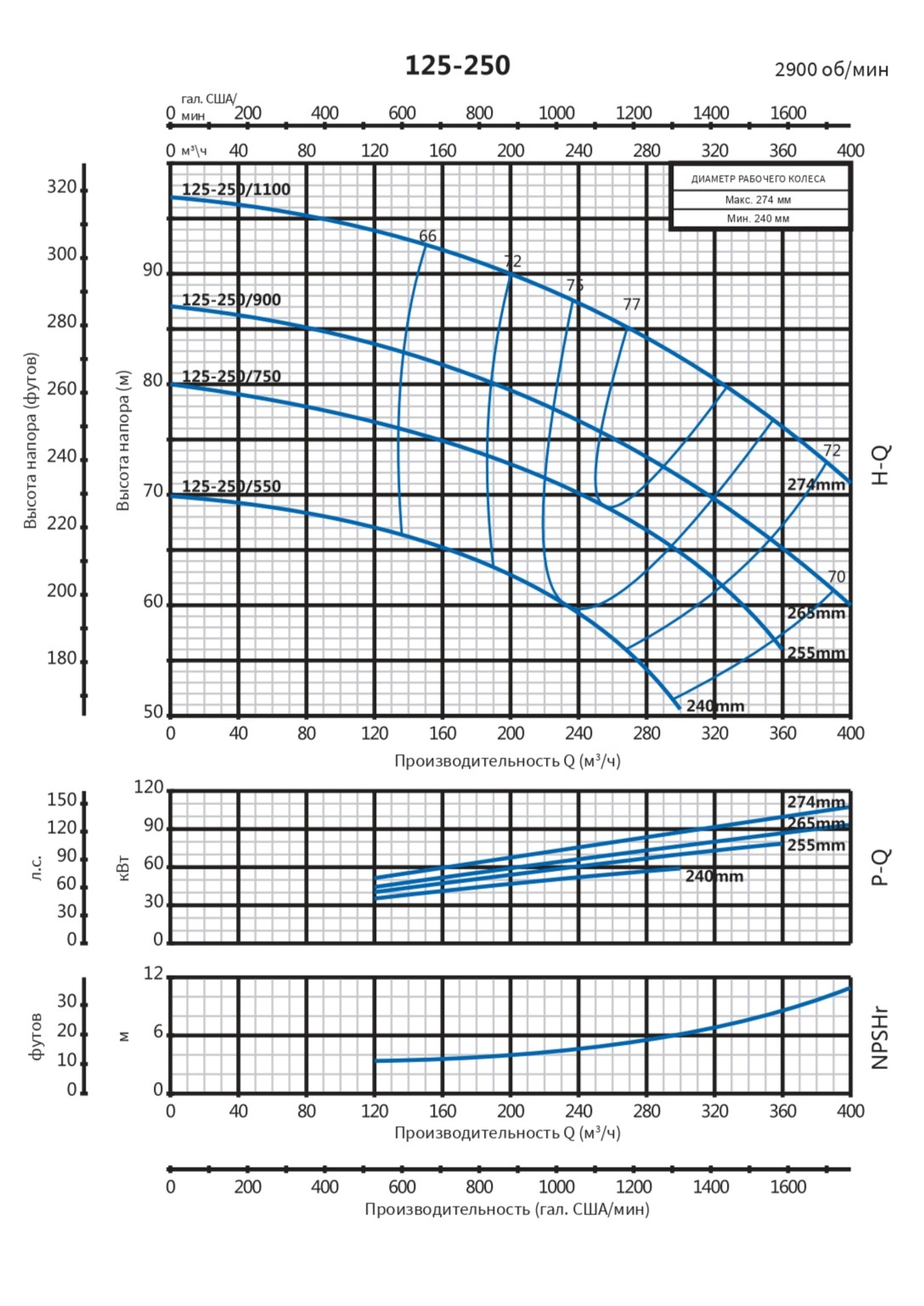 Мощность насоса Purity PSTG 125-250/900 (N) составляет 90 кВт, а напряжение — 380В. Насос обеспечивает напор от 60 до 84 м, производительность — от 120 до 400 м³/ч. Способен перекачивать жидкость в температурном диапазоне от -10 до +120°С.