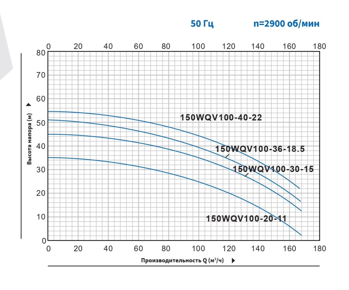 Мощность насоса Purity 150WQV100-36-18.5/2 составляет 18.5 кВт, а напряжение - 380В. Насос обеспечивает напор 36 м, производительность 100 м³/ч.