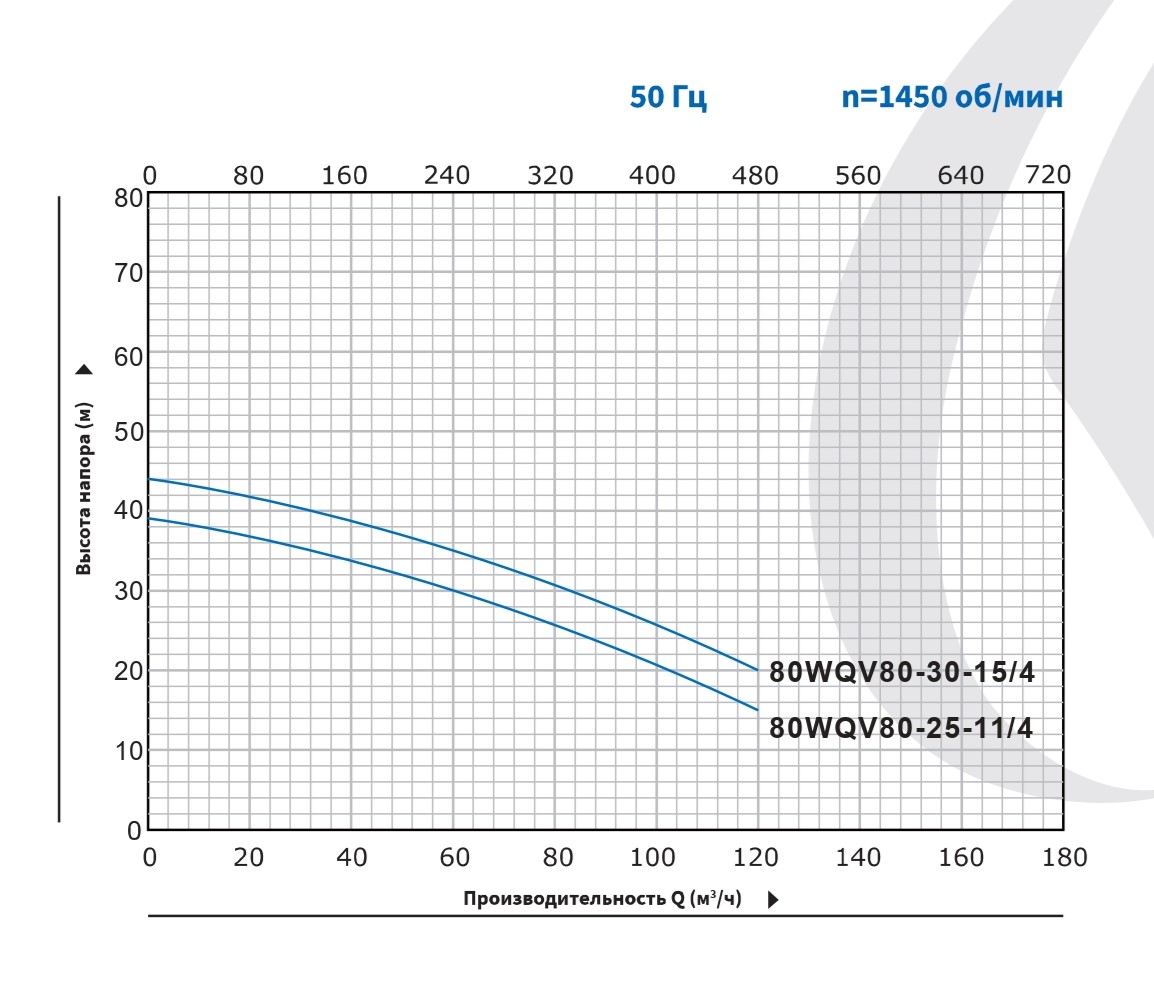Мощность насоса Purity 80WQV80-25-11/4 составляет 11 кВт, а напряжение - 380В. Насос обеспечивает напор 25 м, производительность 80 м³/ч.