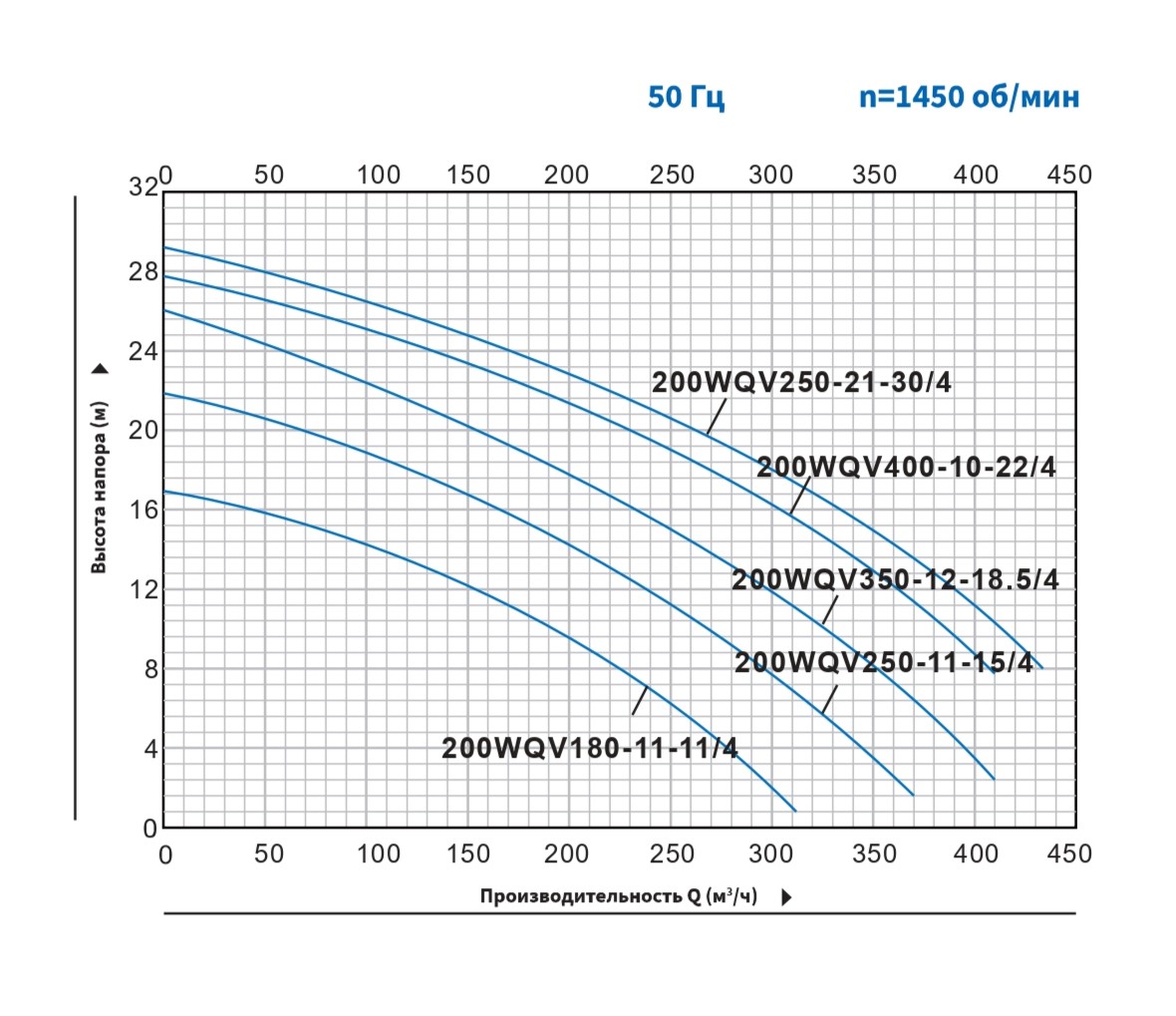 Мощность насоса Purity 200WQV250-21-30/4 составляет 30 кВт, а напряжение - 380В. Насос обеспечивает напор 15 м, производительность 350 м³/ч.