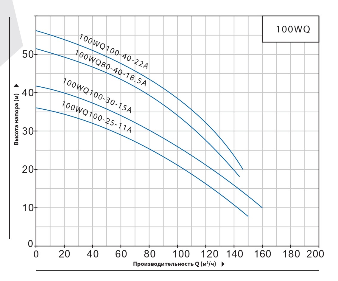 Мощность насоса Purity 100WQ100-40-22A составляет 22 кВт, а напряжение - 380В. Насос обеспечивает высоту напора 40 м, производительность 100 м³/ч.