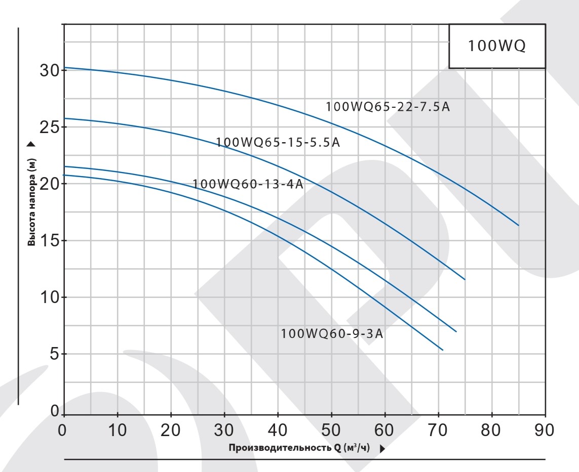 Мощность насоса Purity 100WQ60-13-4A составляет 4 кВт, а напряжение - 380В. Насос обеспечивает высоту напора 13 м, производительность 60 м³/ч.