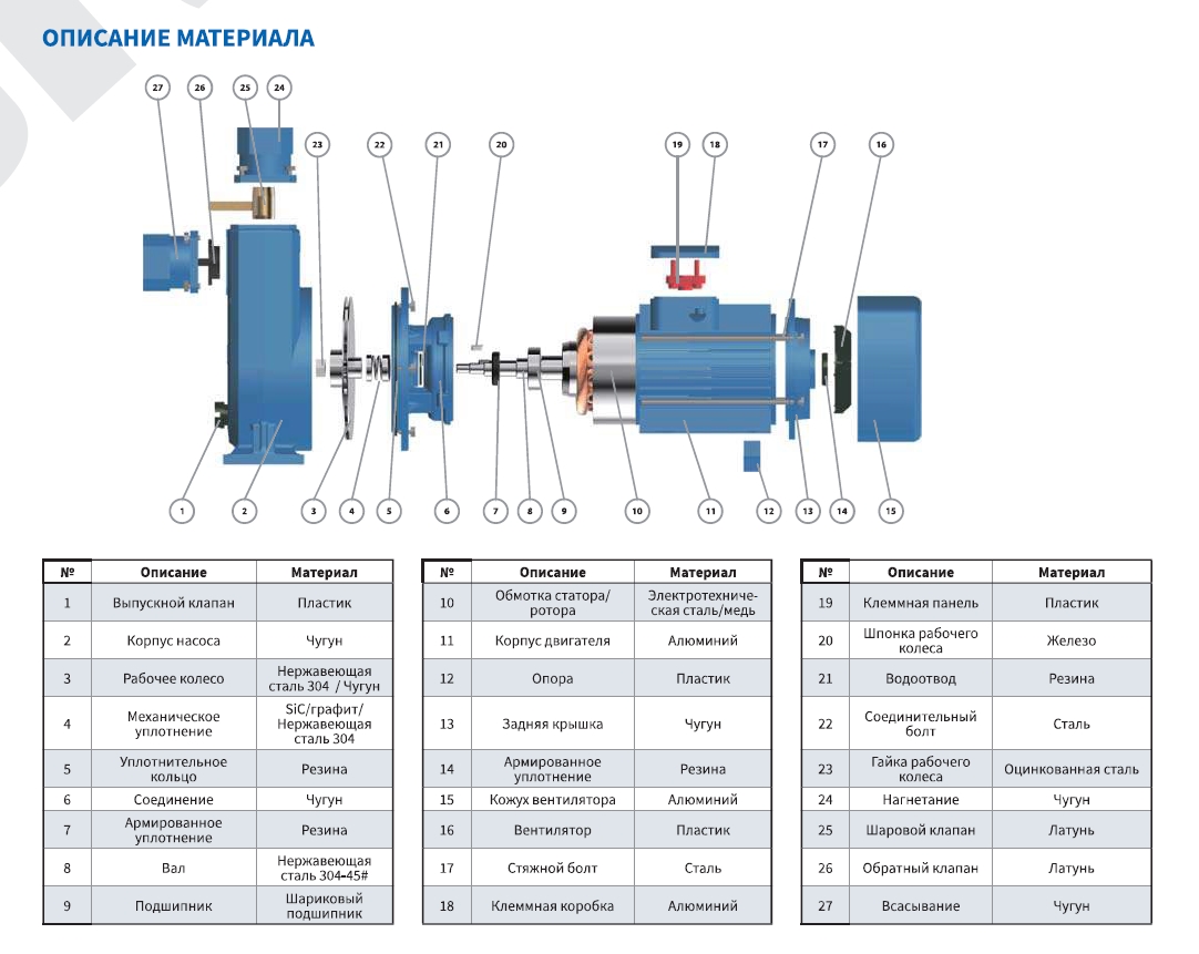 Мощность насоса Purity PXZ 25-45-4 составляет 4 кВт, а напряжение - 380В. Насос обеспечивает максимальный напор 45 м, максимальную производительность 25 м³/ч.