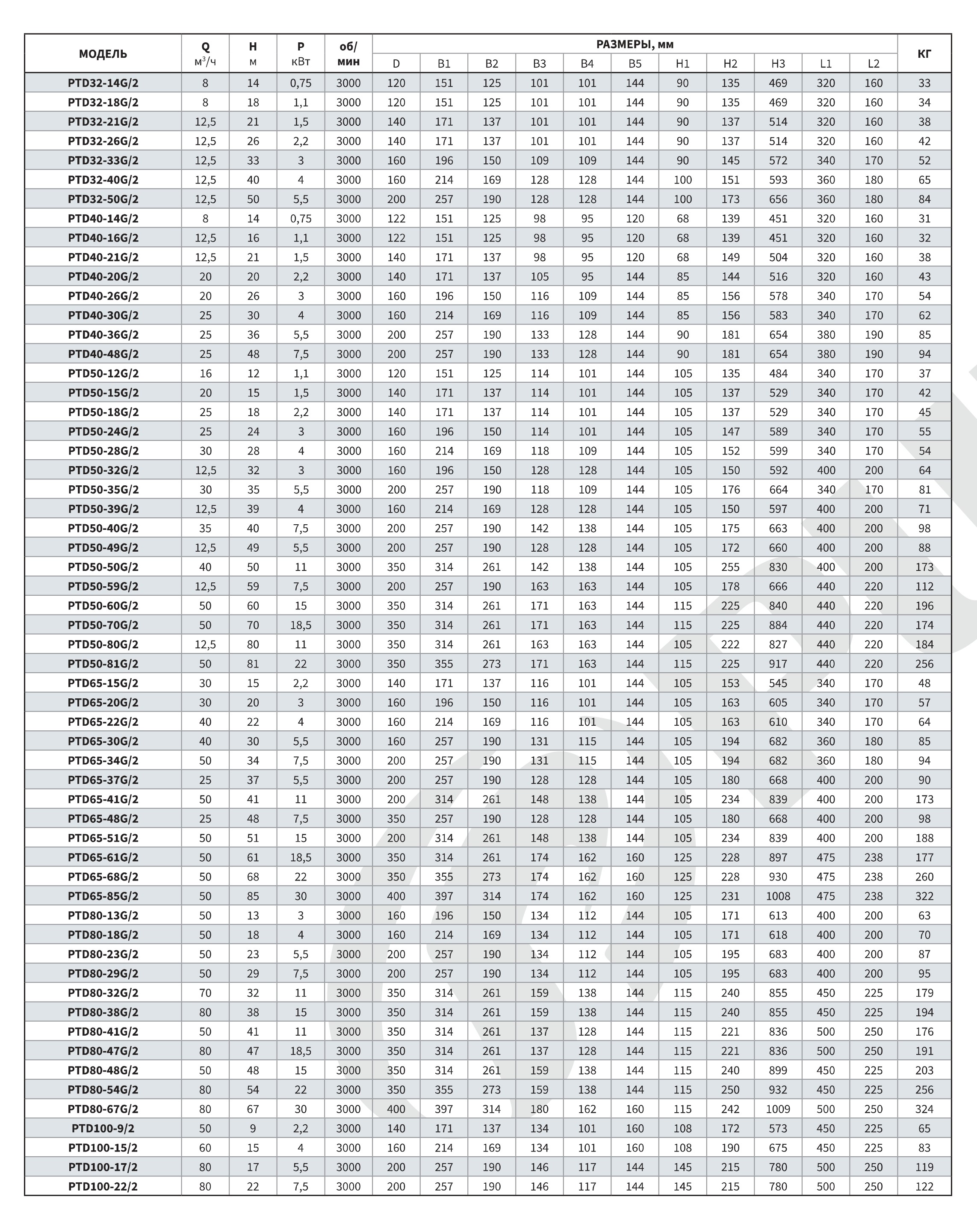 Мощность насоса Purity PTD50-18G/2 (N) составляет 2.2 кВт, а напряжение - 380В. Насос обеспечивает напор 18 м, производительность 30 м³/ч.