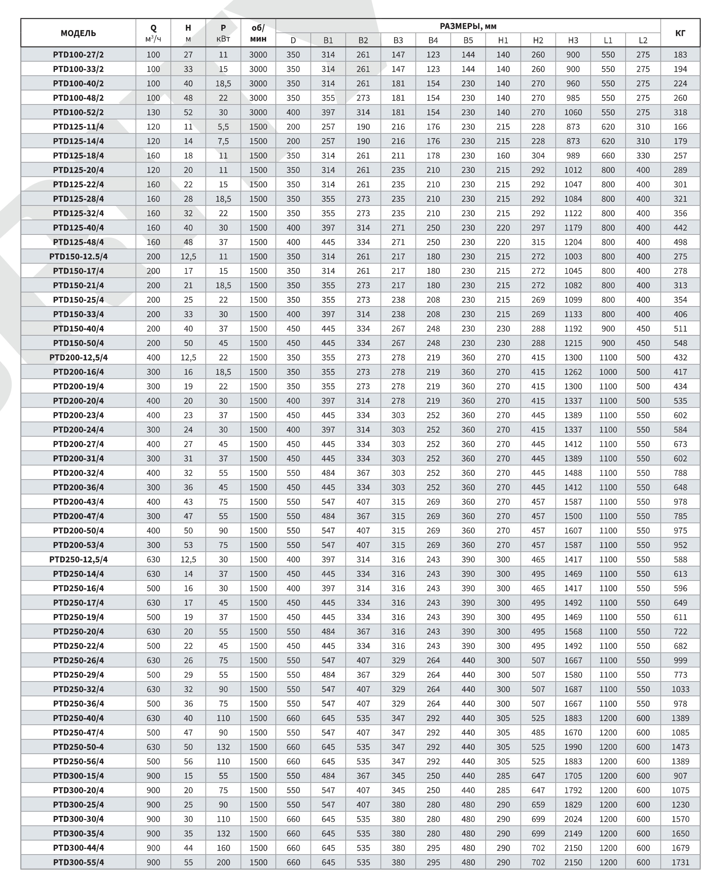 Мощность насоса Purity PTD200-20/4 (N) составляет 30 кВт, а напряжение - 380В. Насос обеспечивает напор 20 м, производительность 300 м³/ч.
