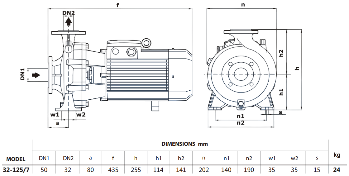 Центробежный насос серии PSTG-R5 имеет общий вал и одно рабочее колесо из стали AISI 304. Конструкция насоса моноблочного типа с прямым присоединением двигатель-насос, патрубки фланцевые.