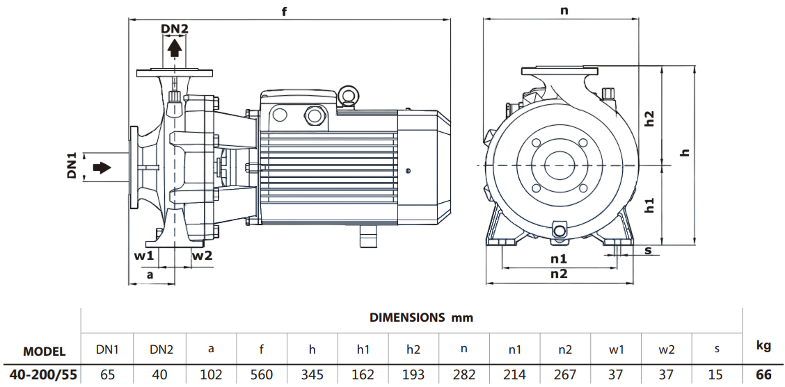 Центробежный насос серии PSTG-R5 имеет общий вал и одно рабочее колесо из стали AISI 304. Конструкция насоса моноблочного типа с прямым присоединением двигатель-насос, патрубки фланцевые.