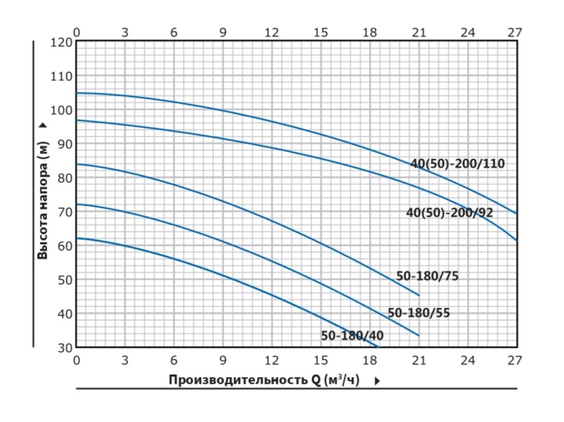 Мощность насоса Purity P2Cm 50-180/40 (N) составляет 4 кВт, а напряжение - 220В. Насос обеспечивает напор от 23 до 59 м, производительность — от 4.8 до 21 м³/ч.
