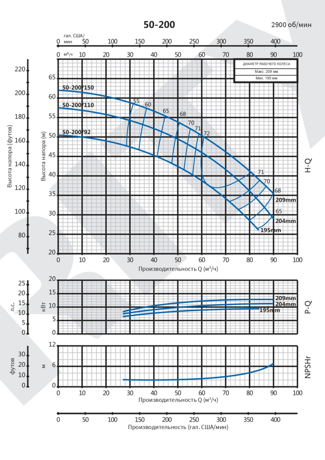 Мощность насоса Purity PSTG 50-200/92 (N) составляет 9,2 кВт, а напряжение — 380В. Насос обеспечивает напор от 26. 7 до 46.8 м, производительность — от 36 до 84 м³/ч. Способен перекачивать жидкость в температурном диапазоне от -10 до +120°С.