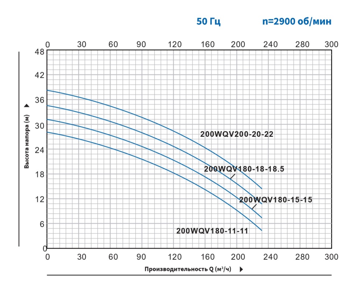 Мощность насоса Purity 200WQV200-20-22/2 составляет 22 кВт, а напряжение - 380В. Насос обеспечивает напор 20 м, производительность 200 м³/ч.
